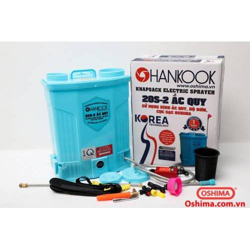 Máy phun thuốc trừ sâu, côn trùng điện HANKOOK 20S-ắc quy Xanh Bình ắc quy 12V8Ah 739k